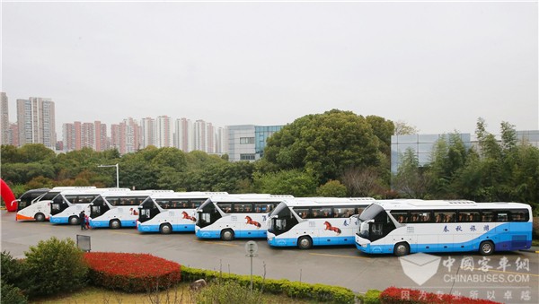 白驹过隙,转眼就是莺飞草长的人间四月天,也是万物复苏,游玩踏青的好时节。近日,位于四川泸州市纳溪区的泸州春秋旅游汽车运输有限公司纳溪分公司(简称“春秋旅汽纳溪分公司”)刚交付并投运了9辆苏州金龙高端旅游客车,进一步扩充了车队规模,为即将到来的旅游旺季做好了车辆储备。