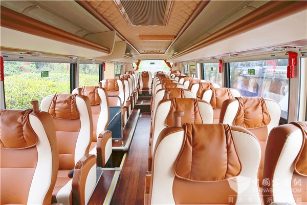 此外,为了打造更舒适的乘车体验,曾另元要求车辆全部采用“2+1”商务座椅布局,而且在座位数、座间距和座椅选择上都提出了定制化的要求,而苏州金龙根据曾另元的要求及时的优化和调整,让曾另元对海格为客户量身定制的研发制造能力频频点赞。