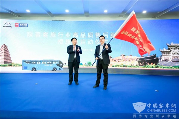 图 | 宇通客车党委副书记王善冲向服务团队代表授旗