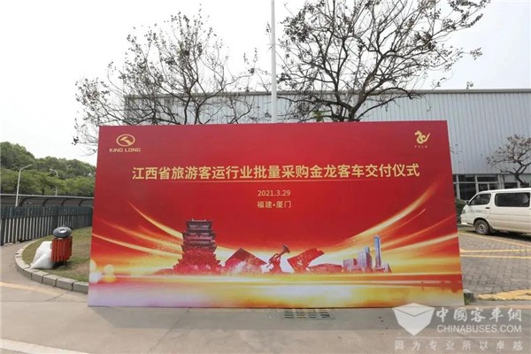 2021年3月29日,江西省旅游客运行业批量采购金龙客车交付仪式在金龙客车厦门厂区举行。本次交付的金龙龙威Ⅱ代定制版车型,兼具气质与实力,将助力江西省旅游客运行业在服务和融入新发展格局上展现更大作为!