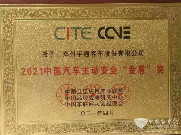 宇通荣获2021中国汽车主动安全”金盾“奖