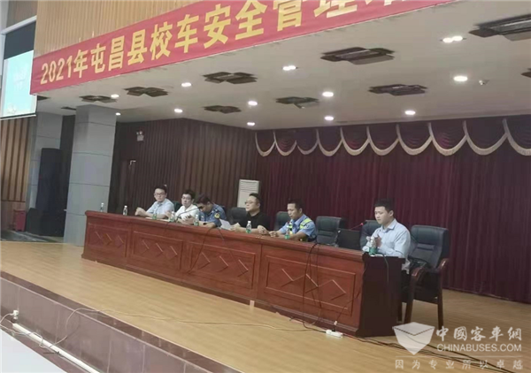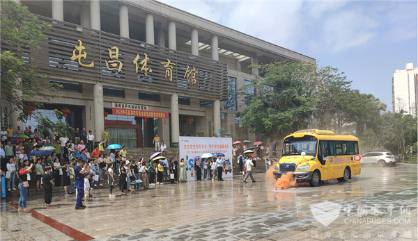 为进一步普及校车安全知识,提升校车安全管理水平,2021年4月10日,海南省屯昌县教育局联合当地交管大队、应急管理局、交通运输局、消防救援大队以及宇通客车,共同举办了2021年屯昌县校车应急疏散演练暨校车安全知识培训活动,当地各相关部门领导,学校、幼儿园分管领导、校车司机、安全管理人员以及学生代表等200余人参加此次活动。
