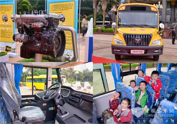 车身性能上,整车采用高强度钢与档距封闭环式车身结构、国内校车最大的逃生安全门,以及前后3.0mm厚保险杠,实现超强被动安全;前轮标配防爆胎应急装置,选装车道偏离预警、自动紧急制动系统和360全景环视、前后防撞雷达系统,智能配置加大主动安全,从前到后、由内而外地保护学生安全。