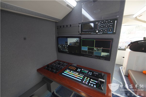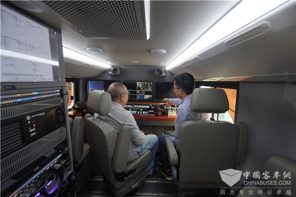 这是国内首辆超高清4K纯电动马拉松移动转播车,由厦门金旅根据星途车型打造,极具现代感的全屏式简约风格,配合欧洲经典的方基调,小圆角造型,保证车内空间最大化,为移动转播设备安置提供条件。这辆移动转播车的视音频制作系统采用4K标准并预留5G通道,采用微波技术,以确保高质量的信号采集与传输。在车顶还配备了三轴户外摄像稳定平台,保证摄像机在移动条件下的稳定拍摄。