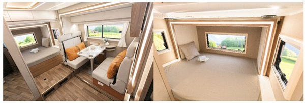 拓·空间,满载生活遍历秀美河山。为满足用户对出行生活便捷多样化的需求而来,上汽大通MAXUS 生活家V90双拓以宽敞、舒适的双拓空间解锁品质旅居生活新方式。一键拓展后的MAX客厅、卧室,完美演绎了新时代旅居生活所需的超大空间。客厅设置对卡座沙发座椅,浅灰色皮质沙发搭配橘色靠枕,赋予了它更加宽阔的座位空间和更加柔软舒适的坐感。不仅是舒适的体验空间,其座椅更满足M1类法规,具备国际标准的ISOFIX儿童安全座椅接口,为用户的出行安全保驾护航。此外,后拓的卧室内置双人大床,搭配乳胶床垫,为用户提供舒享的优质睡眠环境。值得一提的是,卧室空间内还拥有多种巧妙的贴心设计,可容纳阅读、休息等多元化的生活场景。