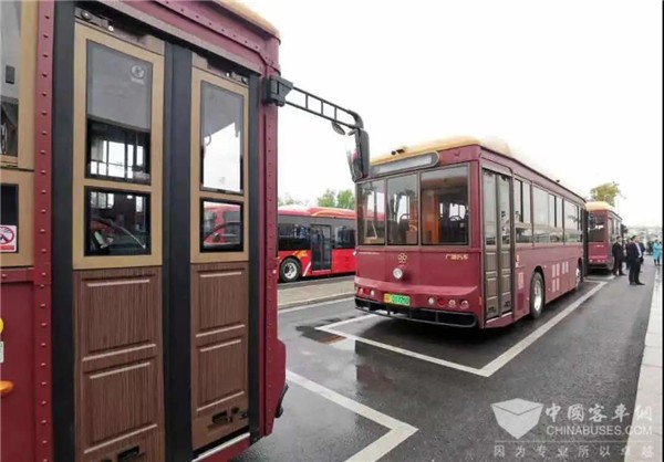 银隆仿古铛铛车搭载银隆钛酸锂动力电池,具有快充放、耐宽温、高安全等特点,可有效提升海门公交的运营能力,助力海门公交绿色低碳发展。