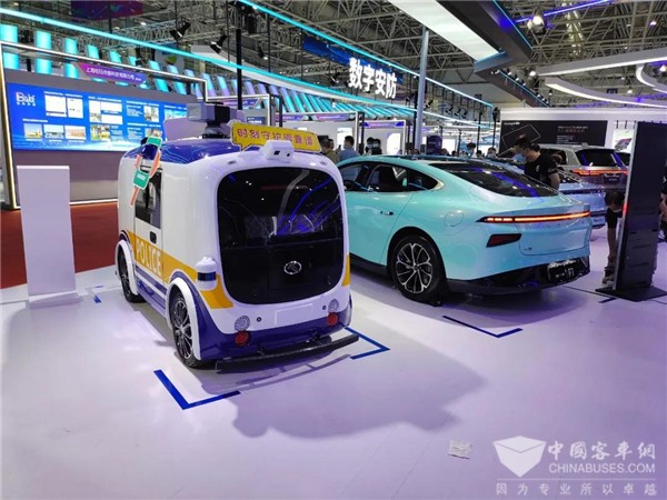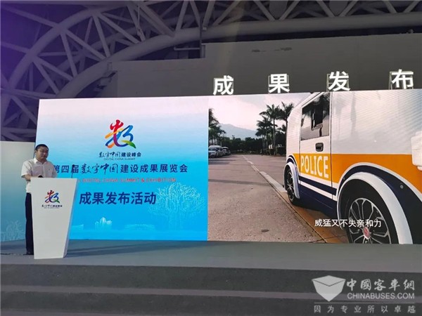 2021年4月28日,在第四届数字中国建设成果展览会上,金龙客车首次发布旗下最新力作自动驾驶安防车,将AI技术运用于园区安防巡逻、动态环境监控领域,以智能科技促进城市生活、环境安全、生产安全的可持续发展。
