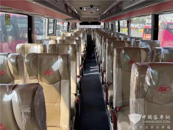 A6外观简约大气,内饰温馨舒适,配备了人体工程学座椅、空调出风口、阅读灯、整体式行李架等丰富的人性化装置,有效满足乘客的个性化、多样化需求。与传统公交车相比,这批车辆为48座,车长约11米,车内空间更大、更通透,视野更加开阔;座位均配有安全带及椅背扶手,且视频监控全覆盖,行车更安全;采用纯电驱动,起步轻、行车稳、噪音低、零排放,干净整洁的车厢环境和平稳安静的乘车体验让人印象深刻。