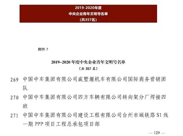 喜报|中车电动客车事业部总装车间荣获“中央企业青年文明号”荣誉称号