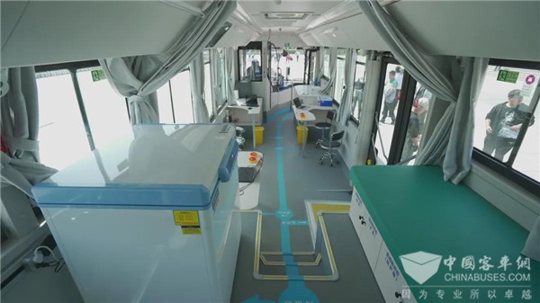 同时,为了确保医护人员与接种人员的健康,欧辉移动疫苗接种车配备了超级健康客车强大的“超级测温拦截系统”、“超级空气滤净系统”、“超级紫外抗菌系统, 实现全方位安全保障。