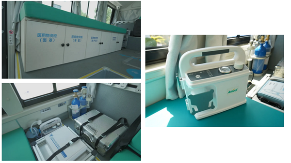 移动疫苗接种车开展工作时,接种人员通过等候区自动测温系统检测后,进行信息登记后进入候诊区等待接种疫苗。接种完毕后,需到车外留观区留观30分钟,即可完成接种。同时,为了应对突发情况,车内配备了多个紧急配置,可迅速完成急救工作,保障疫苗接种工作的安全进行。在异常反应处置区同时设有门帘,有效保证接种人员的隐私与防护。