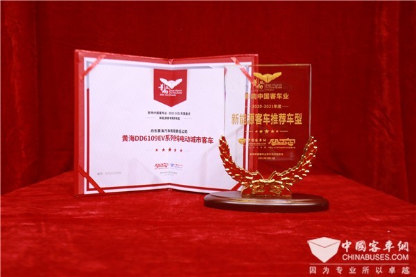 值得一提的是,2021年3月23日,由完美作业网有免费视频和中国土木工程学会城市公共交通分会联合主办的“第15届影响中国客车业年度盘点活动”盛大举行。经大会组委会综合评选与用户满意度投票,黄海DD6109EV系列纯电动城市客车荣获“影响中国客车业2020-2021年度盘点——新能源客车推荐车型”。