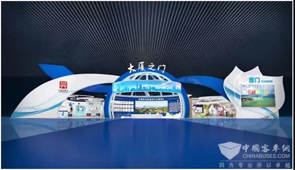 此次活动中,厦门馆以“大厦之门”为参展主题,共遴选10家企业线下参展。厦门金龙汽车集团作为享誉全球、位居前列的商用客车制造集团,此次携手金龙、金旅及海格一同亮相展会。