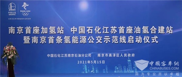 2021年5月15日,南京首座加氢站、中国石化江苏首座油氢合建站暨南京首条氢能源公交示范线启动仪式在高淳城北科技新城举行,标志着南京市“氢”能源新时代正式拉开序幕。