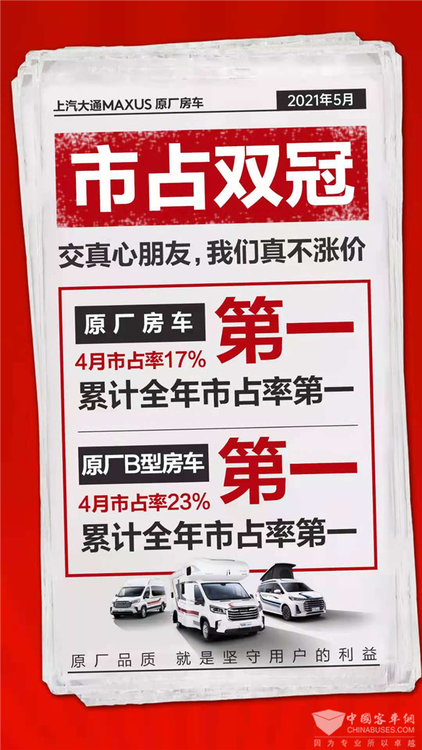 房车热度攀升 上汽大通MAXUS 4月“双料冠军”再现大厂实力