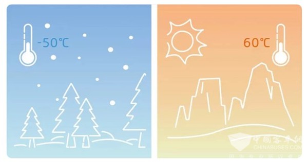 钛酸锂电池具有耐宽温特性,整车在-50℃~60℃超低温、超高温范围内可稳定运行,有效解决高寒地区车辆运营难题。