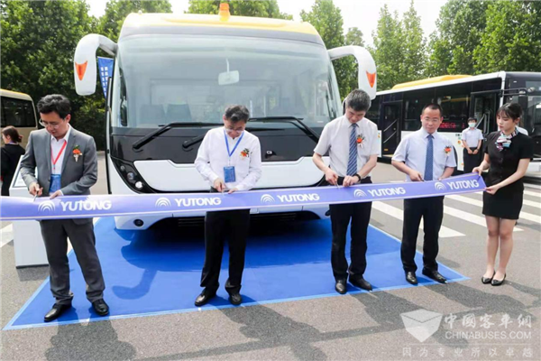 宇通新一代纯电动机场摆渡车剪彩仪式