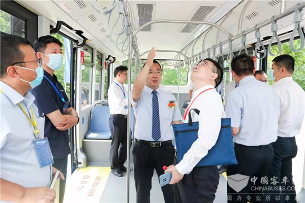 与会嘉宾参观体验宇通新一代纯电动机场摆渡车