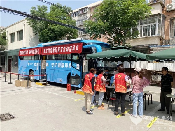 截止目前,欧辉移动疫苗接种车已为北京市50个社区提供“送苗上门”服务,累计接种高达4万余剂次。