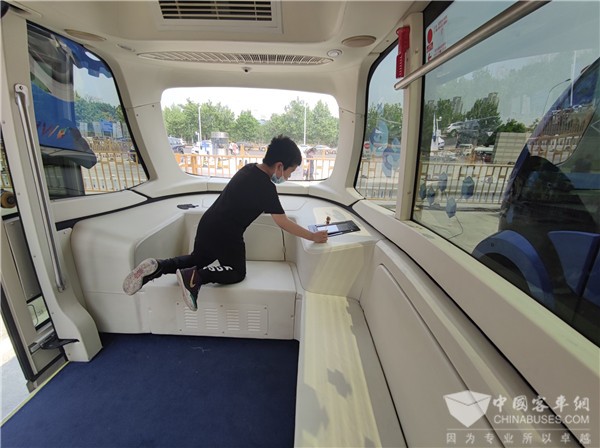 “来试乘体验的市民很多,不少家长趁着周末带小朋友过来,这里已经快成了网红打卡地了,或者说是小朋友们接触新鲜科技的另类课堂。”苏州金龙技术中心智能网联研究室工程师司炎鑫穿梭于人群之中,一面维持着秩序,一面解答市民关于自动驾驶的技术问题。他告诉记者,参展的“深蓝”L4级自动驾驶巴士是海格客车2019年推出的产品,也是很能代表海格客车自动驾驶研发成果的经典车型。
