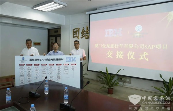 当IBM项目总监将体现IBM管理思想的“金旅客车SAP新业务流程规则”移交给金旅公司党委书记、董事长兼总经理彭东庆,预示着由IBM实施的SAP系统从此正式在金旅扎根运行,在金旅的管理经营和未来发展中将发挥巨大的作用,也预示着金旅公司从此接下系统的固化和维护责任,并将逐步优化壮大。