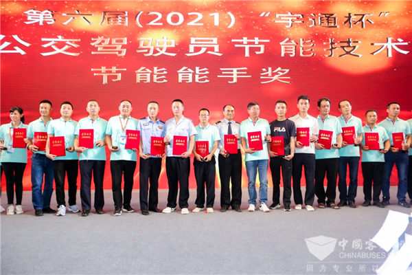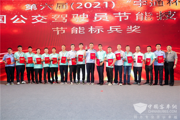 纯电动10.5米组节能明星第一名:一号车郑州公交杨宏雨、二号车重庆公交刘延君;纯电动12米组第一名:三号车上海久事公交徐俊、四号车郑州公交孙红雨