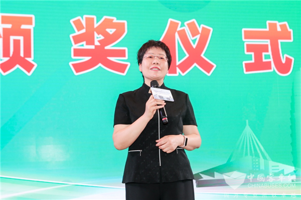 中国土木工程学会城市公共交通分会副秘书长蔡夏英为获奖选手颁奖