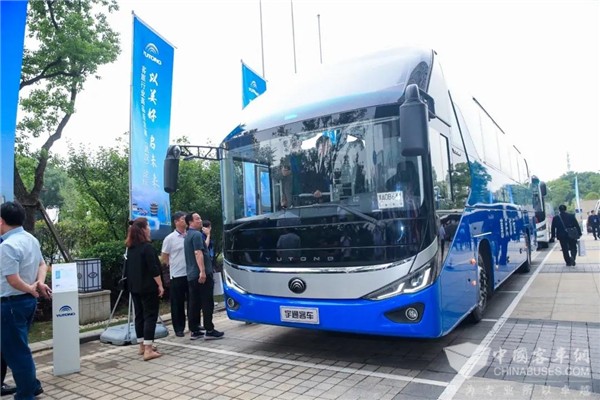 在会上,宇通客车推出国六新品ZK6128HQ(2021款),车辆标配宇通客车自主开发研究的蓝芯节油系统,通过分析车辆载荷、道路情况和驾驶员驾驶意图等数据,实现智能油门、智能换挡提醒、空挡滑行提醒、空调起步停机等功能,大幅提升车辆性能。