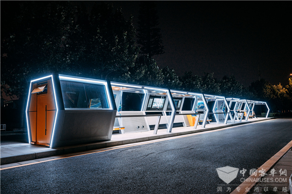 智能驾驶公交线路上还建设了34个“太空舱”造型智慧站台,造型时尚、极具科技感。通过高清定位和大数据技术实现公交时刻表运行,并提供精准到秒级的车辆到站提醒服务。