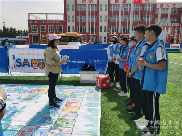 宇通&壹基金儿童交通安全公益行是一堂生动的交通安全体验课,内容包括交通知识安全操、认识车辆盲区、认识大货车内轮差、探索神奇的盒子、安全头盔接力赛、安全带的使用方法、校车安全乘车体验、交通安全飞行棋等,还会为学校带去交通安全知识绘本、视频等教具。活动于2019年启动,据宇通客车股份有限公司京津冀校车分公司经理田伟伟介绍:“前两年共走进全国22个省份,共252所小学,超过10万名学生参与了体验。”