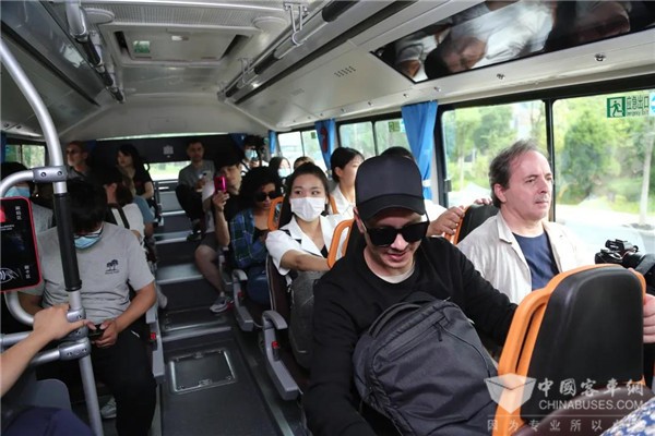 全球大v乘坐福田欧辉氢燃料客车