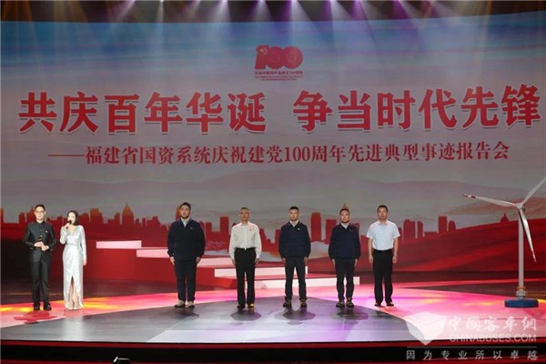 2021年6月8日,由福建省国资委党委主办,福建省投资开发集团、福建省广播影视集团承办的“共庆百年华诞 争当时代先锋”——福建省国资系统庆祝建党100周年先进典型事迹报告会在福州举办。金龙客车第五党支部作为先进集体代表参加报告会并作“党旗在疫情防控第一线高高飘扬”负压救护车生产先进事迹报告。