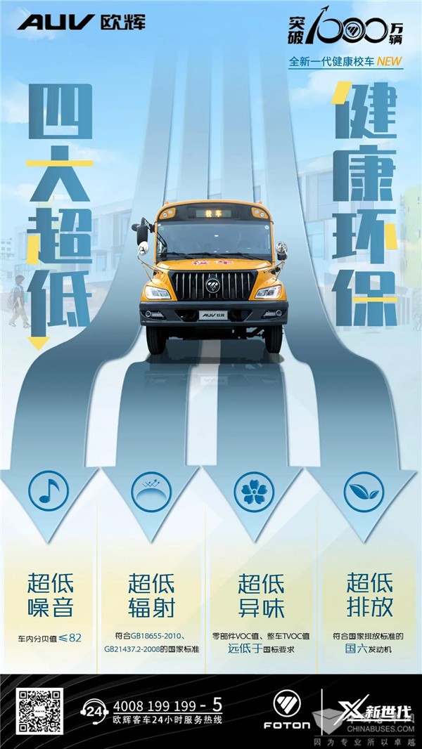 儿童是家庭的未来也是国家的未来。为守护儿童出行的健康,欧辉新一代健康校车以技术为先导,通过新材料的升级应用为广大儿童打造健康环保的车内空间。未来,欧辉还将持续在新材料、新技术等领域不断前进,推动客车产业的绿色环保升级。