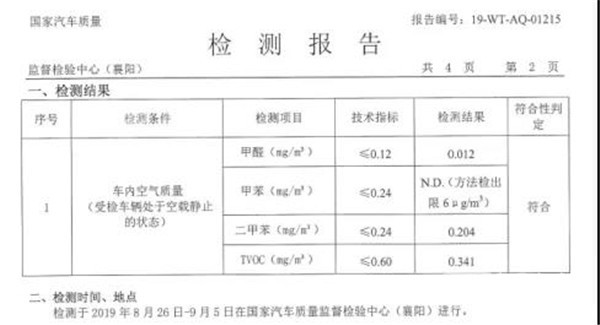 经过多项技术与材质升级,欧辉新一代健康校车的零配件VOC值和整车VOC值大大低于甲苯≤0.12mg/㎡和甲醛≤0.24mg/㎡的国家标准,其甲苯的检测量为0.012 g/㎡,仅为国家标准的十分之一,而甲醛则显示“未检出”,也就是检测量为零。