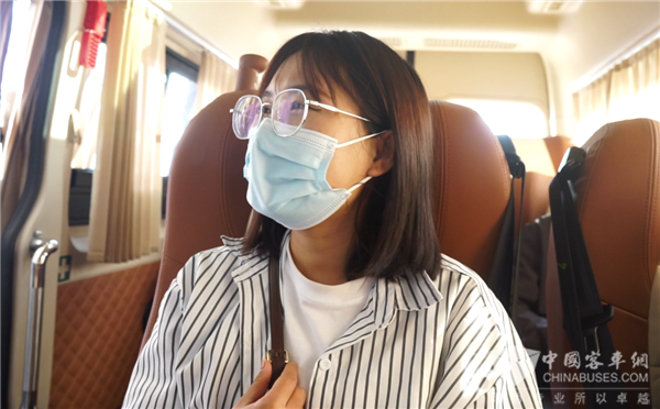 更值得一提的还有,海格睿星为乘客匠心营造的高端舒适乘坐空间。车内高度足有1900mm,乘客行动自如、不需弯腰。内部布置8个乘客座位,全部采用高端舒适商务座,并且带双扶手、腿托,前后可调节,座垫宽度500mm,座位间距800mm以上,宽敞舒适体验感满满。在采访中,乘客小普告诉记者,这次是趁闲暇时间带爸爸妈妈到昆明走走看看,从玉溪到昆明选乘这趟班线,非常方便,等车时间也很短,基本是即上即走。车内座椅豪华还有USB充电口,后面还有宽敞的行李舱放置行李,都非常贴心。出门在外,交通舒心,旅途心情自然更愉悦。