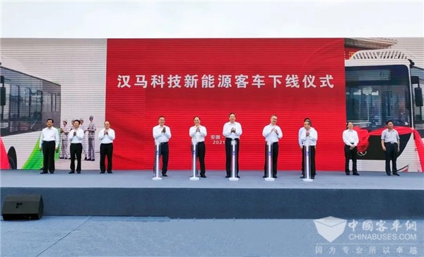 安徽省委书记李锦斌、省长王清宪、马鞍山市委书记张岳峰、吉利控股集团董事长李书福与高级副总裁俞学良出席开工仪式,并共同启动汉马科技新能源客车的下线。汉马新能源客车将重点投放安徽市场,首批产品将全部交付马鞍山公交集团。