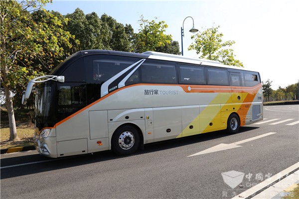 高端旅游客车旅行家,外观、安全、性能等立体升级,“2+1”的航空式舒适座椅,高铁下拉式窗帘、变换车内氛围灯,人性化USB充电口、手机槽等,种种细节都契合商务接驳、全域旅游出行的高端需求。