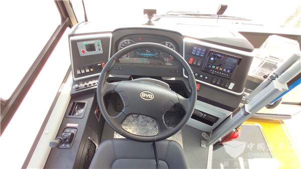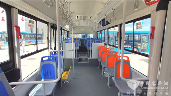 “内外兼修”,安全出行。B8驾驶室采用全包围设计,安装智能钥匙系统、气囊减震六向可调驾驶员座椅、多功能仪表台等,为司机提供安全舒适的独立操作空间;车内配色以莱茵白为主,采用钢塑环保阻燃乘客座椅、不落地扶手,营造舒适乘车环境。在行车安全上,该车配有360°全景环视、易燃易爆检测系统、主动安全预警系统、全新一代胎压监测集成显示等装置,为当地居民的安全出行保驾护航。
