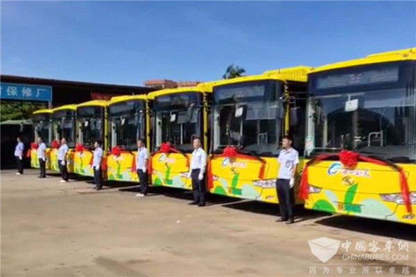 喜迎建党百年华诞——138辆金龙纯电公交海口上线