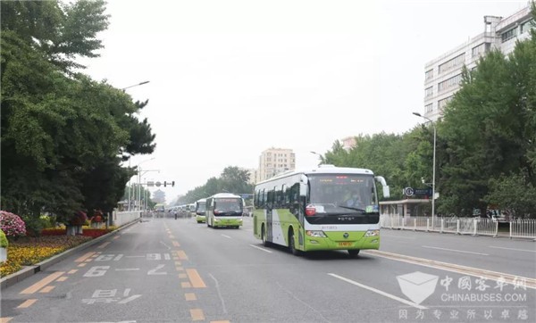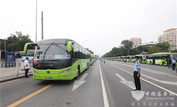 欧辉新能源客车鸟巢外集结点等候接驳庆典工作者