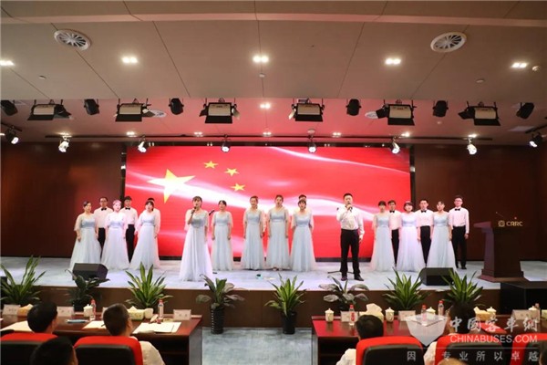 红色七月是诗歌的画卷,让我们吹响奋进的号角,踏歌而来。会议尾声,中车电动合唱团齐声唱响“我爱你中国”,向伟大的中国共产党、伟大的祖国唱响心声。