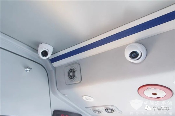 整车配备全软化护栏、自动卷收安全带,保障舒适性体验。车内配备医药箱,紫外线杀菌灯,带智能测温功能的人脸识别系统等,其中毫米雷达波可实现智能检测,对车内关门后存在心跳、呼吸、带生命特征的进行报警。