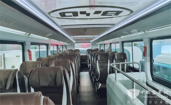 比亚迪B12D在客车行业内首次采用乘用车级灯光体验效果,使其更符合现代都市蓬勃发展韵律,配置“迎宾灯”开启温馨出行:驾驶区实行整体式包围,配备多功能司机座椅、高清液晶显示器、智能驾驶辅助系统等先进配置,全面提升驾驶体验。乘客区则充分体现“以人为本”,一层内高超1.9米,二层采用宽1.1米的超级全景天窗,采用中控防紫外线隔热玻璃、超纤皮材质座椅、精品展示柜、休闲吧台、USB充电口等人文设计,让旅游观光出行成为一种享受。
