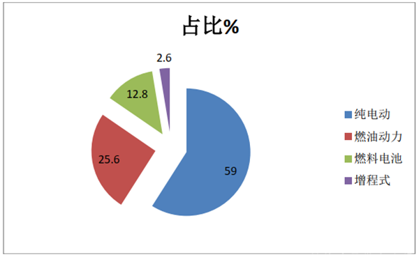参展车型按技术路线划分,有23款纯电动客车参展,占比为59%,是这次参展车型的主体部分,主要含纯电动城市客车、纯电动商务车等(其中比亚迪和金旅最多均为4款);燃油类有10款参展,占比25.64%,主要含旅游客车、城间客车等(其中福田欧辉、安凯客车、海格客车、北方客车均为2款,并列第一);燃料电池客车有5款车型参展,占比为12.8%(不含晓兰客车1款燃料电池清洗车,包括宇通、福田、中车及中通、晓兰客车各1款燃料电池客车),还有1款增程式客车参展(晓兰客车1款),占比2.6%。