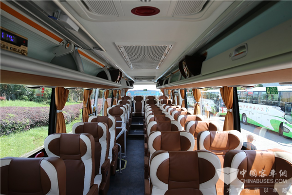 作为以旅游为主的运营车辆,这次采购的车辆车身图案上写有“天水鼎兴旅游商务头等舱”的字样。安小平说,这是这批2+1车型一大亮点,让乘客能够体验到航空座椅头等舱的享受,另外还给车辆加装了点歌台和音响系统,能够为导游与游客互动提供更好的体验。
