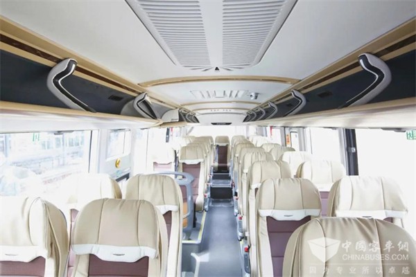 面对炎炎夏日,凉爽舒适的空调是不少人的“续命”神器。为让游客可以享受到如春天般舒适的旅途环境,欧辉BJ6122城间客车配备海松芝旗下SZC系列客车专用空调,每小时功率高达3.1万千(49536瓦),是普通家用1匹空调(2324瓦)的21.3倍。同时为避免冷气直吹人体出现不适,欧辉智能温控空调系统采用车内两侧风道送风模式,再加上数显自动温控、故障自动诊断等诸多智能管理功能,为乘客带来舒适旅途。
