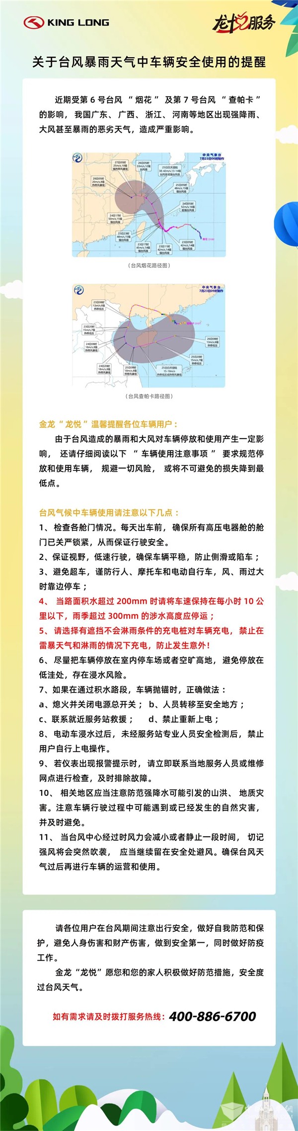 金龙龙悦服务:台风暴雨天气车辆安全使用提醒