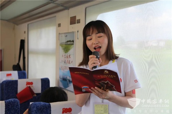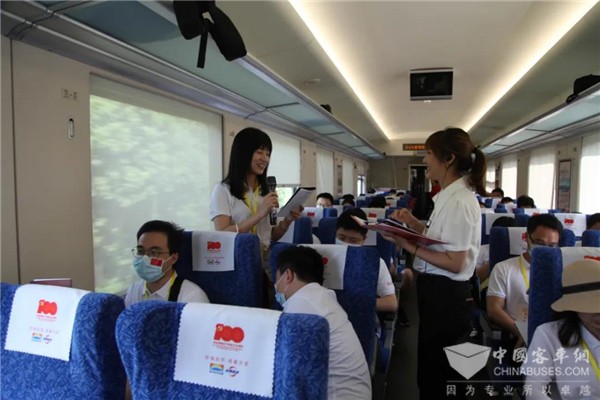 “没有共产党就没有新中国”“我和我的祖国,一刻也不能分割”......随着红色经典音乐响起,前往茶陵的专列缓缓启动。全体党员在“红色主持人”的带领下,开展重温入党誓词、唱红歌、学党史、听红色故事、体验红军餐等“七个一”活动。