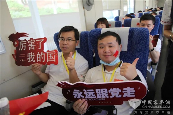 一路上,党员们将“永远跟党走”“厉害了我的国”的标语握在手中,心中满是欣喜与自豪!