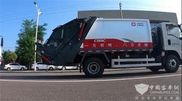 暴雨过后,城市、村庄街道存留的淤泥深达20—30厘米,为了能够减少当地市政清洁道路的压力,中车电动此次捐赠了包括洗扫车、压缩式垃圾车、路面养护车、消杀车等一批环卫装备。